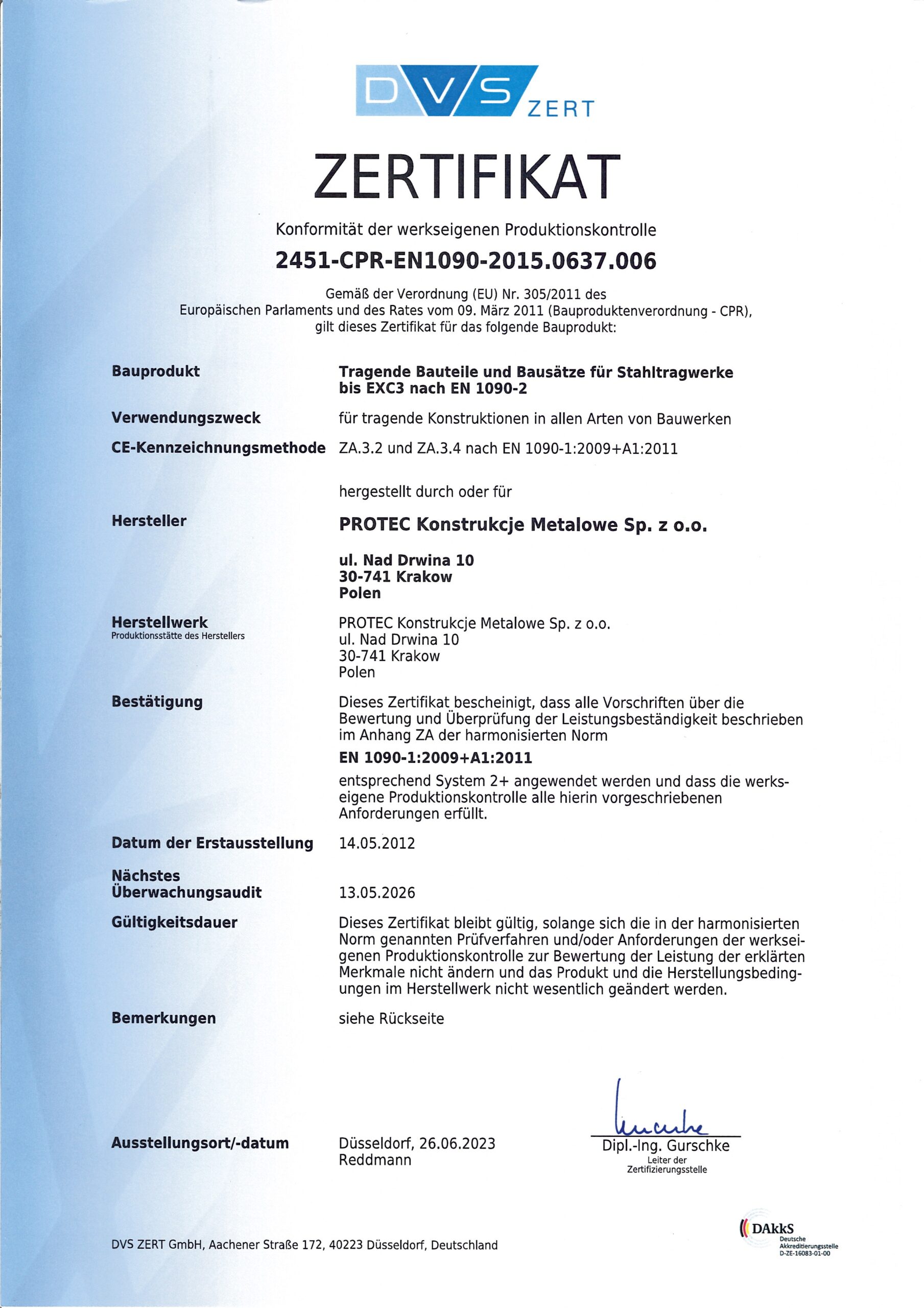 Welding certificate GSIBB-EN 1090-2.00012.2012.003